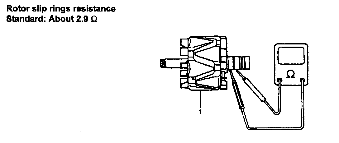 Using ohmmeter, check that there is no continuity between slip ring and rotor. If there is continuity, replace rotor.