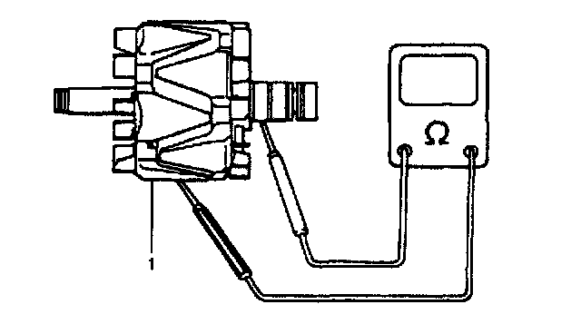 Using ohmmeter, check for continuity between slip rings of rotor. If there is no continuity, replace rotor.