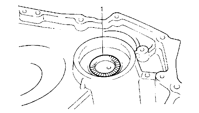 7. Place thrust needle roller bearing (1) and race to transmission case.