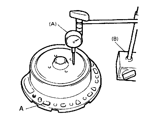6. Measure piston stroke with compressed air (400 - 800 kPa, 4 - 8 kgf/cm2, 57 - 113 psi) through oil hole section (A), using special tools.