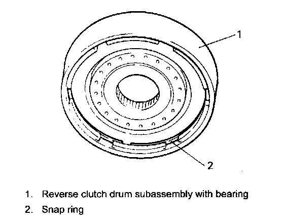 3. Remove snap ring (2) of reverse clutch drum (1) with bearing.