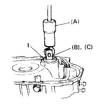 2. Install integrated needle roller bearing (1) to transmission case.