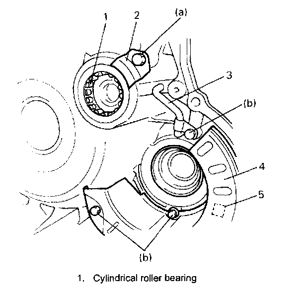Roller bearing retainer bolt (a): 13 Nm (1.3 kgf-m, 9.5 ft. lbs.)