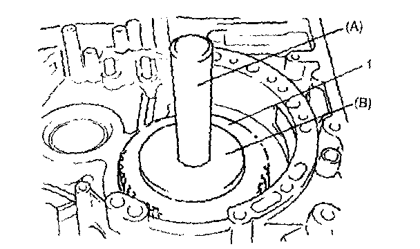 22. Install snap ring by using snap ring pliers (special tool), and remove special tools (A) and (B).