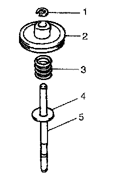 a. Install rod washer (4), spring (3), brake piston (2) and new E-ring (1) to brake piston rod (5).