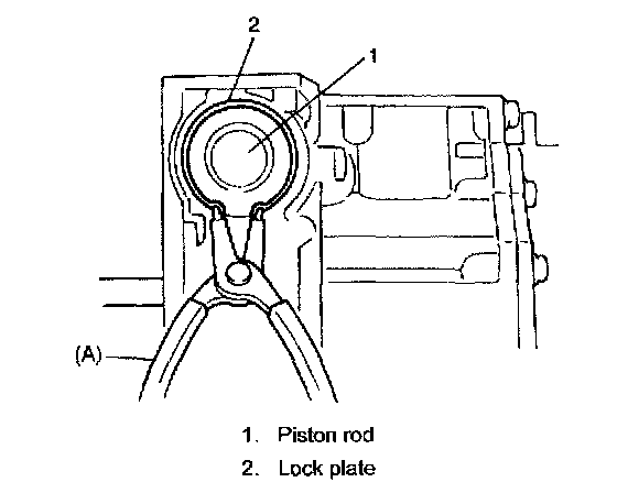 NOTE: It is best for the head section of piston rod (head section) (1) to protrude from the inner side of transmission case approximately 2 - 3 mm (0.079 - 0.118 inch).