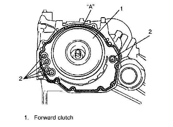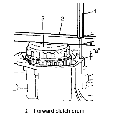 Distance between top of the forward clutch drum and transmission case "a": 46.94 - 47.81 mm (1.848 - 1.882 inch)
