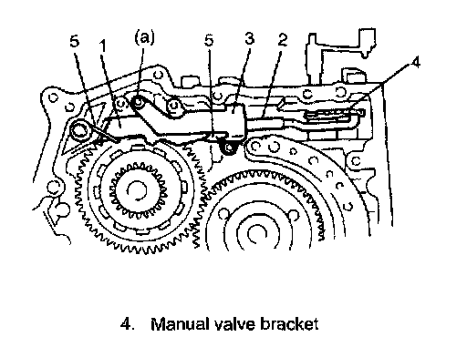 3. Insert manual valve lever shaft (1) to transmission case.