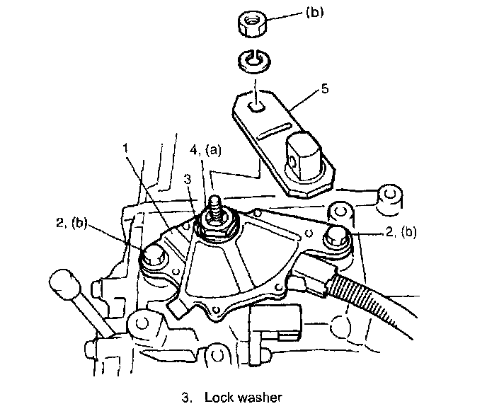 e. Tighten manual shift lever (5) with spring washer and nut.