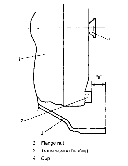Distance between end of the transmission housing and flange nut of torque converter "a": More than 21.4 mm (0.84 inch)