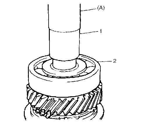 CAUTION: To prevent 5th gear spacer from being distorted because of excessive compression, do not press-fit it with L bearing at once.