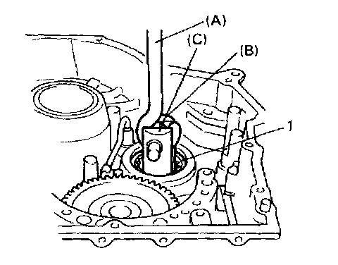 Removal1. Remove cylindrical roller bearing (1), using special tools.