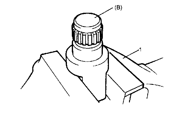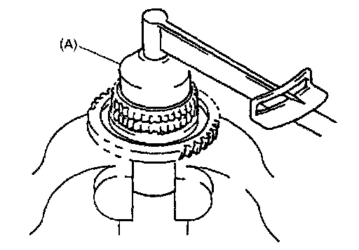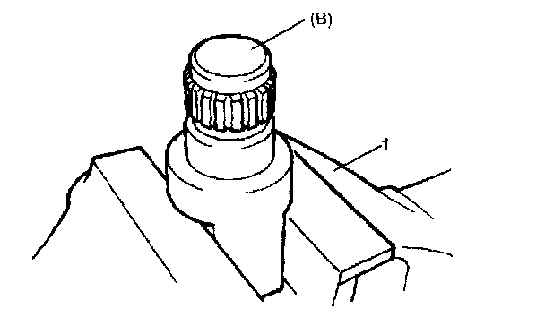 NOTE: When staking lock nut, point a suitable staking tool (1) toward axis center shaft (3) and stake lock nut securely as shown in the figure. (Poor staking may cause abnormal noise.)