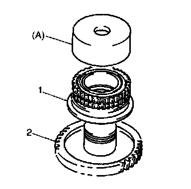 1. Press new angular ball bearing (1) into counter drive gear (2) using special tool.
