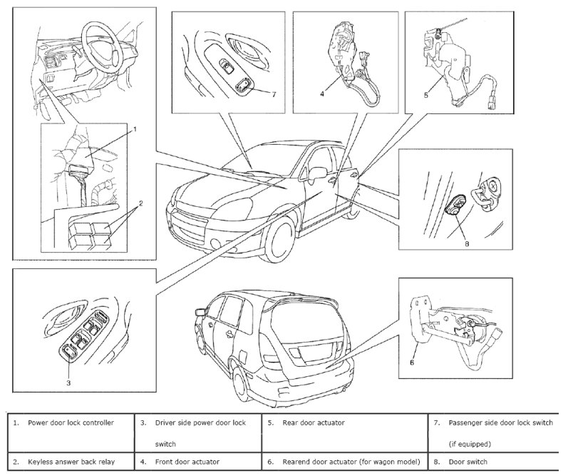 Power Door Lock and Keyless Entry System (If Equipped) Component Location: