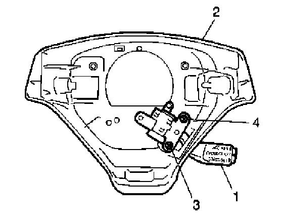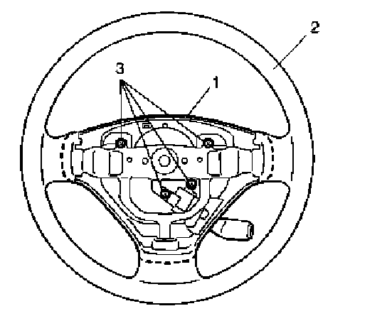 3. Remove steering wheel lower cover (1) from steering wheel (2) removing 4 screws (3).
