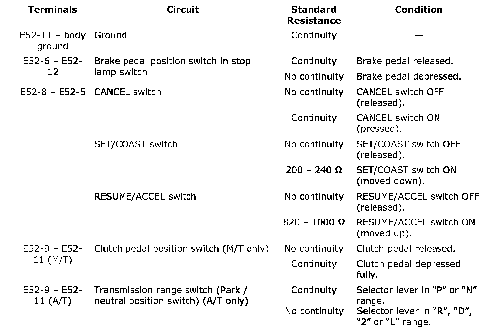 CAUTION: Cruise control module can not be checked by itself. It is strictly prohibited to connect voltmeter or ohmmeter to cruise control module with coupler disconnected from it.