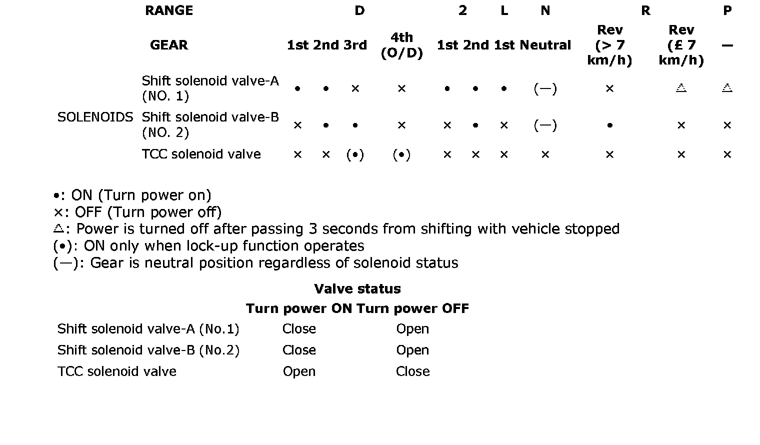 Operation of Shift Solenoid Valves and TCC Solenoid Valve