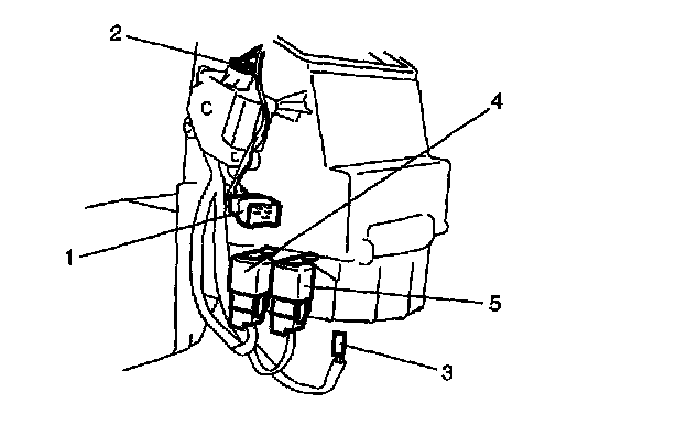 5. Remove blower motor relay (4) and blower motor high relay (5).