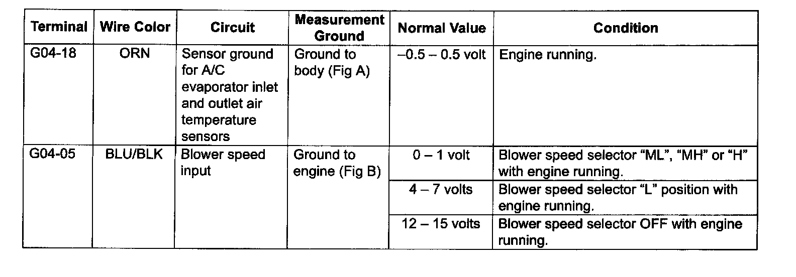 NOTE: As each terminal voltage is affected by the battery voltage, confirm that the battery voltage is 11 V or more when ignition switch is ON position.