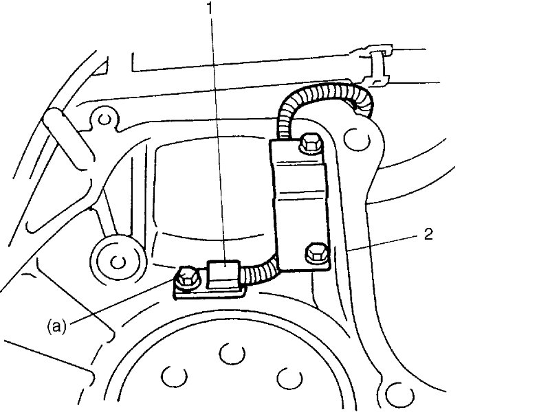 - Install crankshaft position sensor to cylinder block (2) with specified torque.