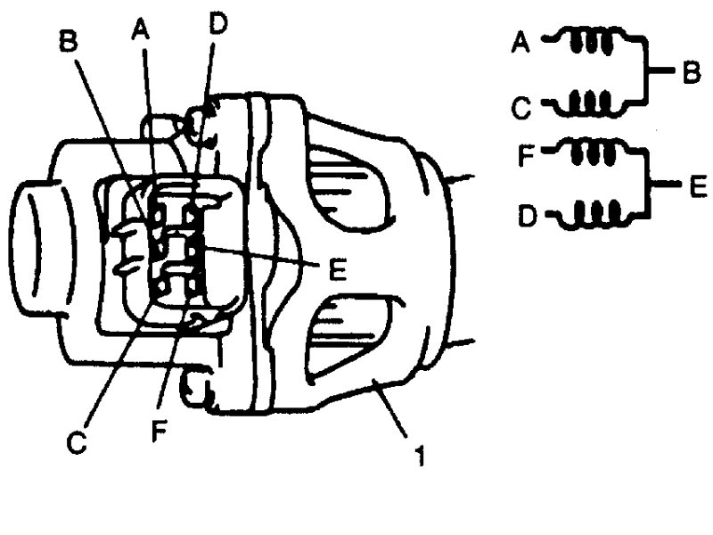 1) Check resistance between the following terminals of EGR valve (1) in each pair.