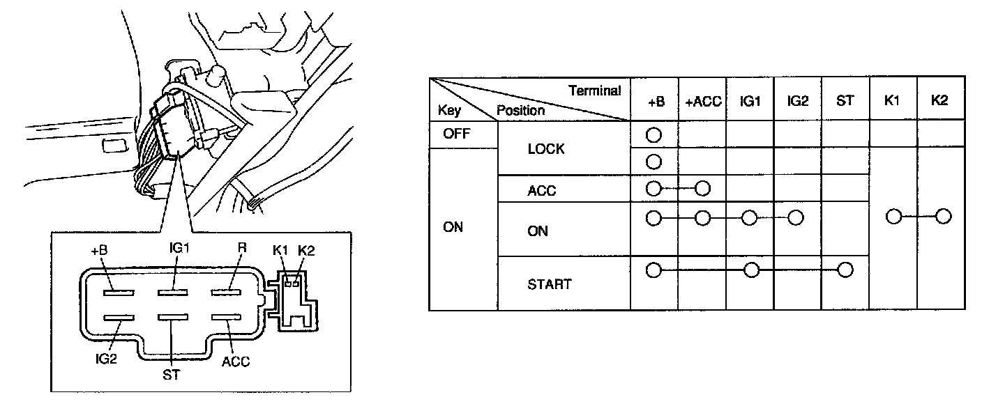 2. Check for continuity between terminals at each switch position as shown in the figure. If check result is not as specified, replace.