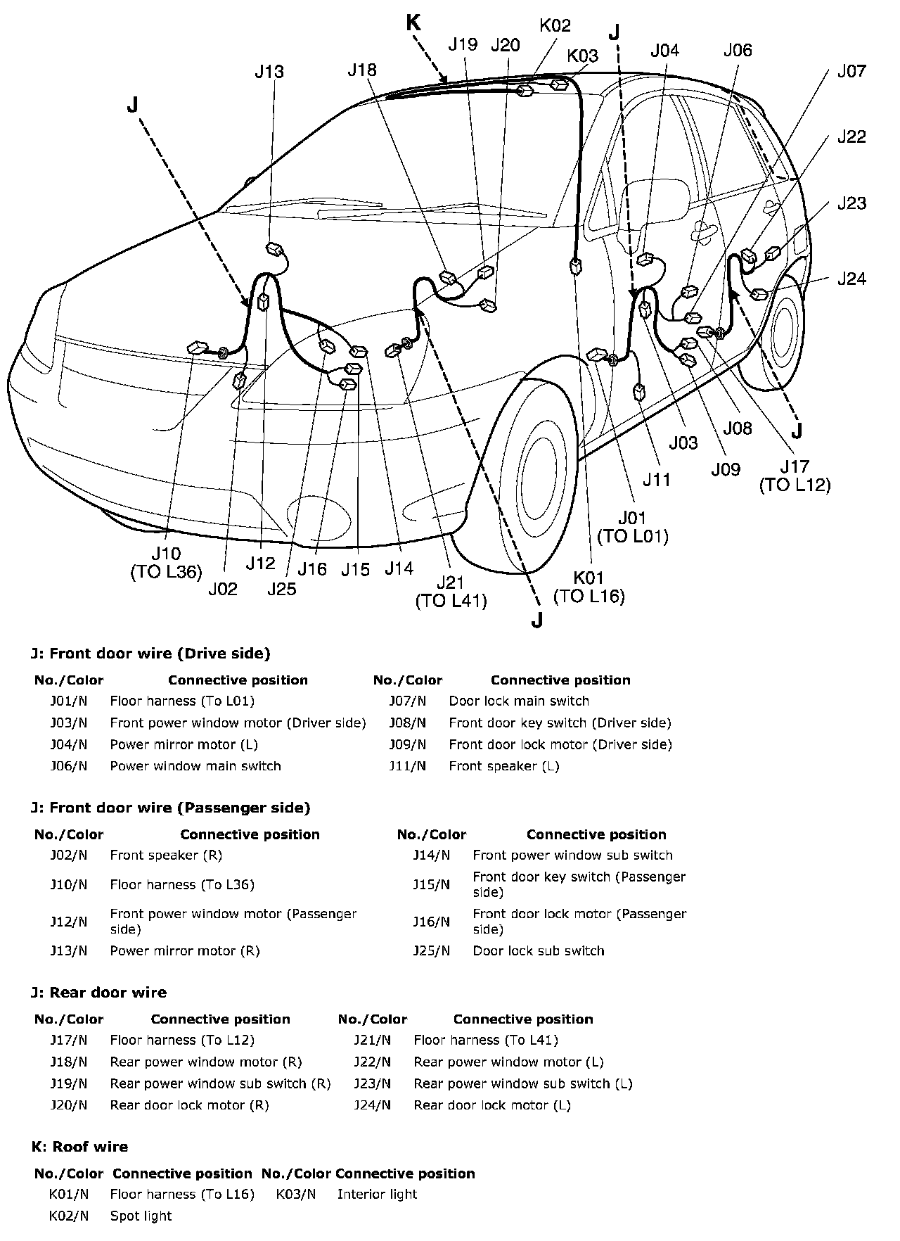 J: Front Door Wire, Rear Door Wire / K: Roof Wire:
