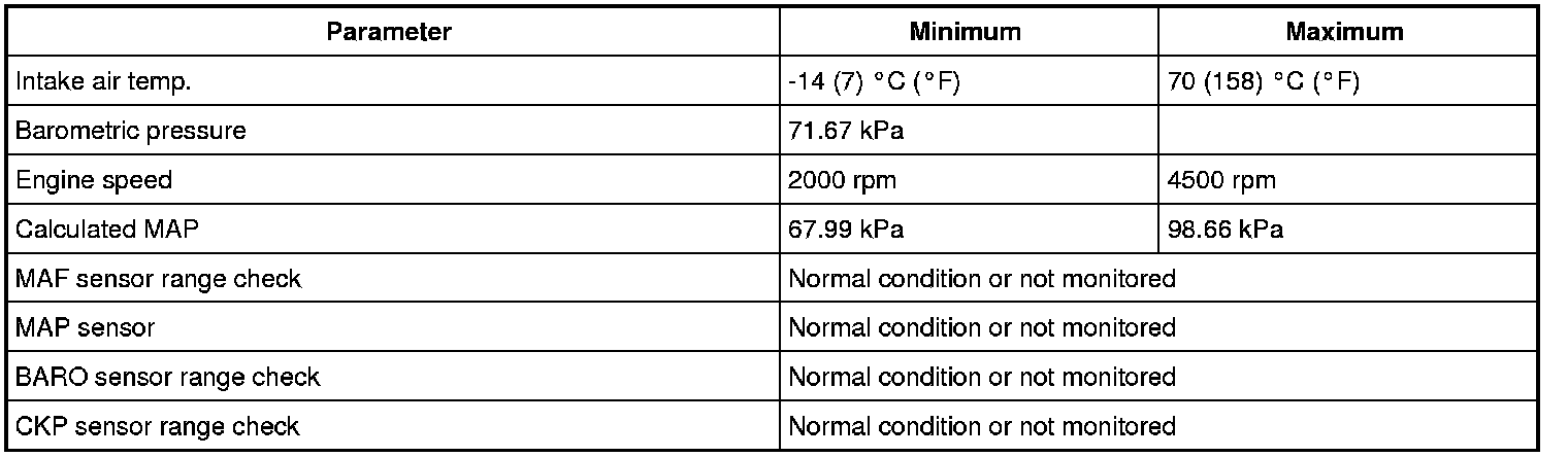 Input signals of MAF (P0102 / P0103), MAP (P0107 / P0108), IAT (P0112 / P0113), ECT (P0117 / P0118), TP (P0122 / P0123), Knock sensor (P0327 / P0328), Fuel tank pressure sensor (P0452 / P0453), Fuel vapor temp. sensor (P2026 / P2027), Fuel level sensor (P0463) and Barometric pressure sensor (P2227 / P2228 / P2229) are checked for open, short of circuit by monitoring input voltage.