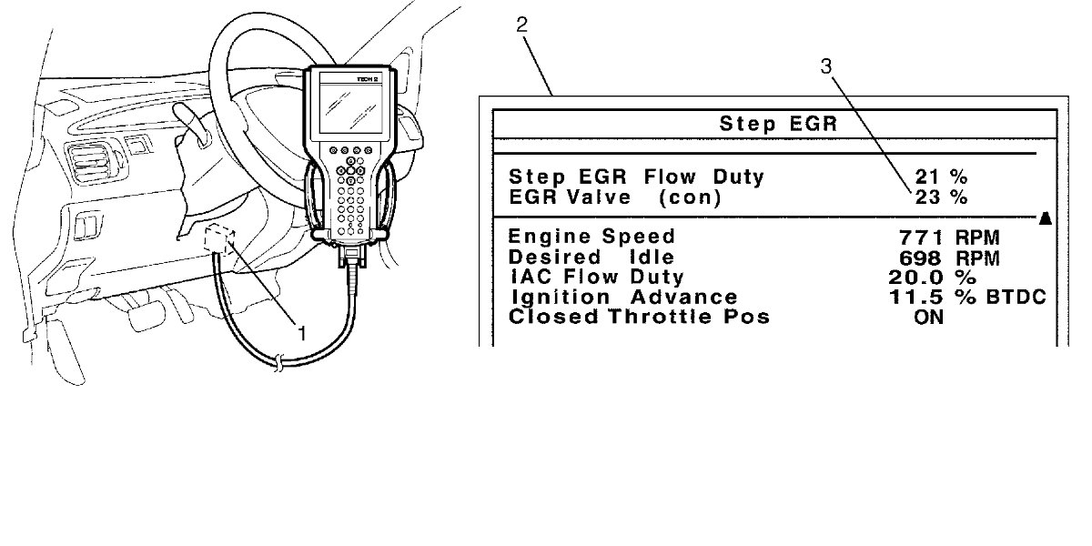 In this state, according as EGR valve opening increases engine idle speed drops. If not, possible cause is clogged EGR gas passage, stuck or faulty EGR valve.