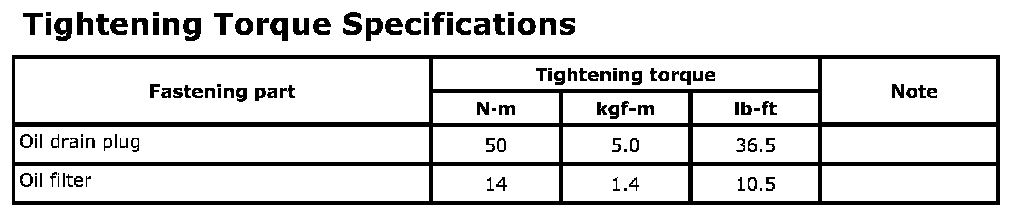 For the tightening torque of fastener not specified, refer to Fasteners Information.
