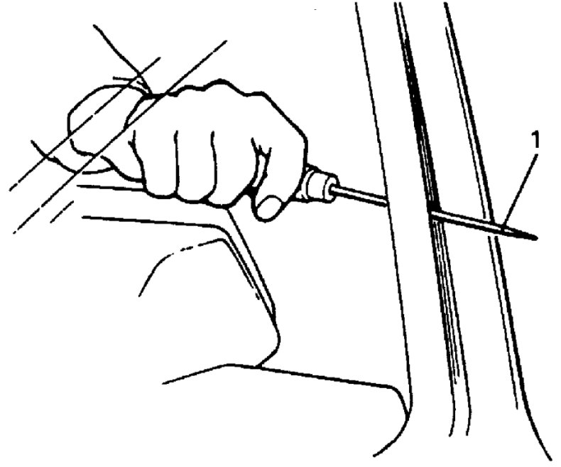 NOTE: Use piano string (2) as close to glass as possible so as to prevent damage to body and instrument panel.