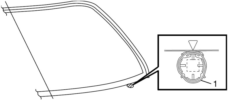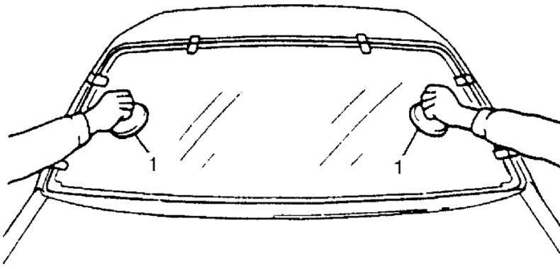 2. Install new glass stoppers (1) (2 pieces) to lower side of windshield.