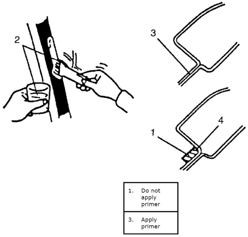 8. Using new brush, apply sufficient amount of primer onto glass along glass edge.