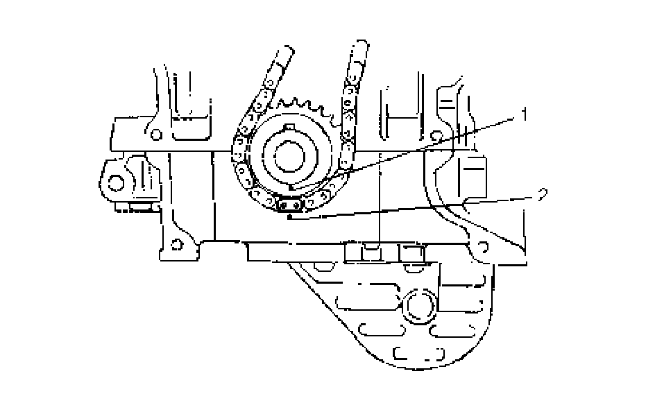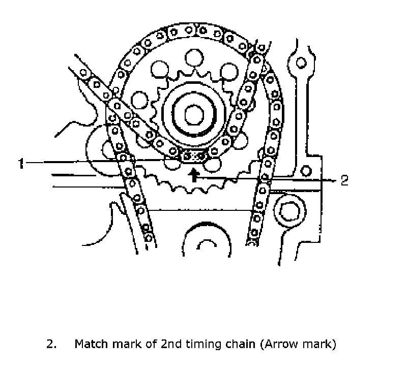 1) Check that match mark (1) on crank timing sprocket is in match with timing mark (2) on lower crankcase as shown in figure.