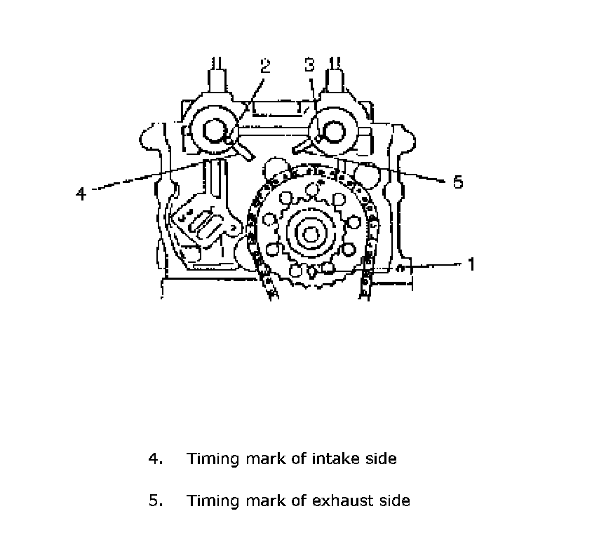 Check that timing marks of cylinder head and cylinder block are in match with match marks on sprockets respectively.