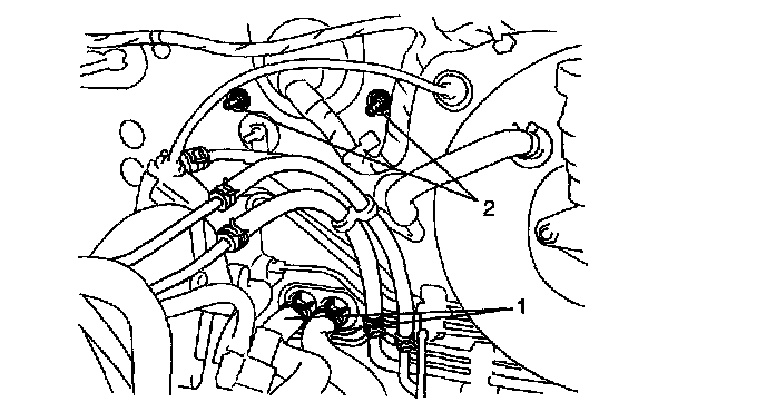2. Drain engine coolant, and disconnect heater hoses (1) from heater unit.