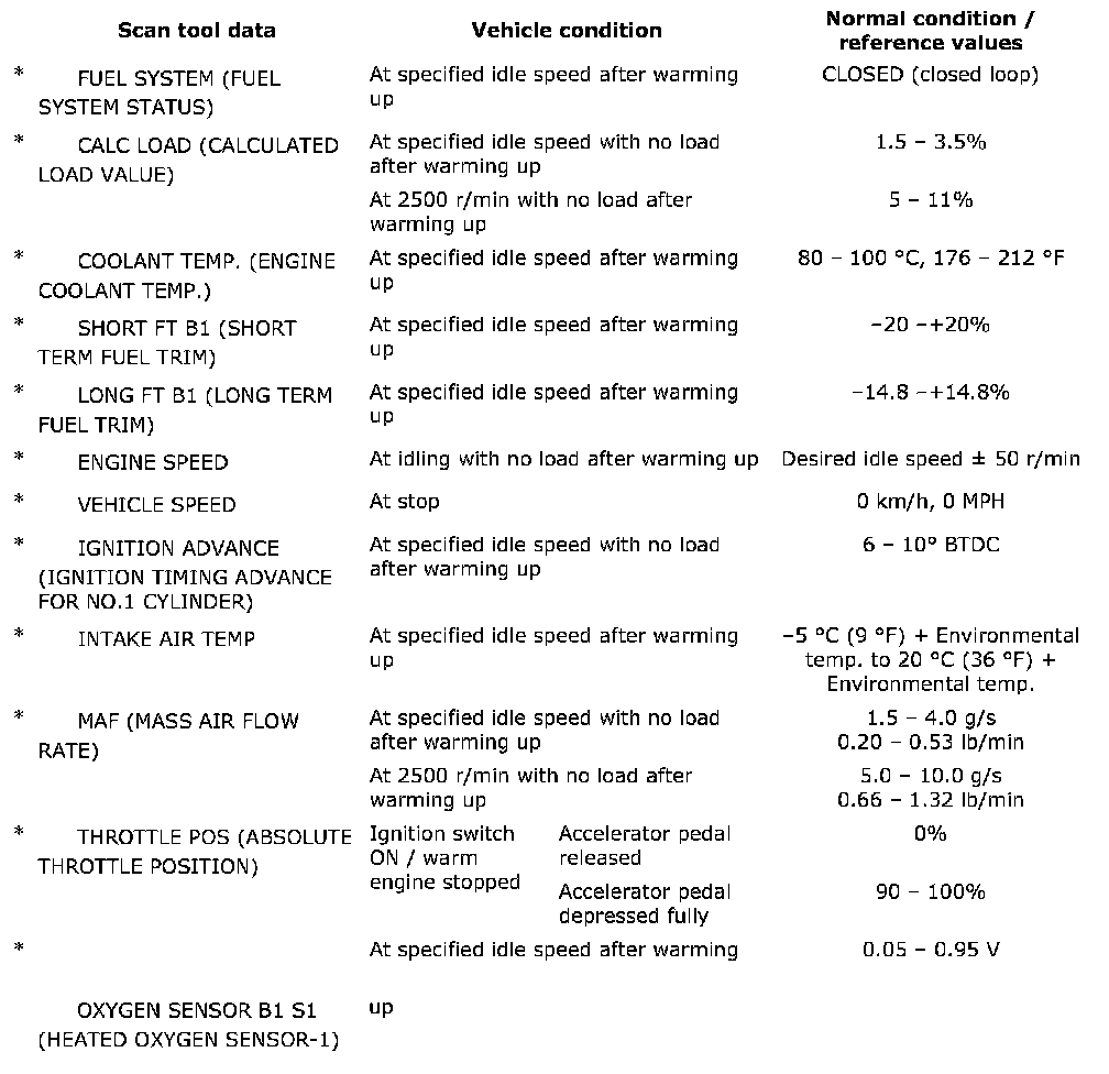 - With the OBD - II generic scan tool, only star (*) marked data in the table can be read.