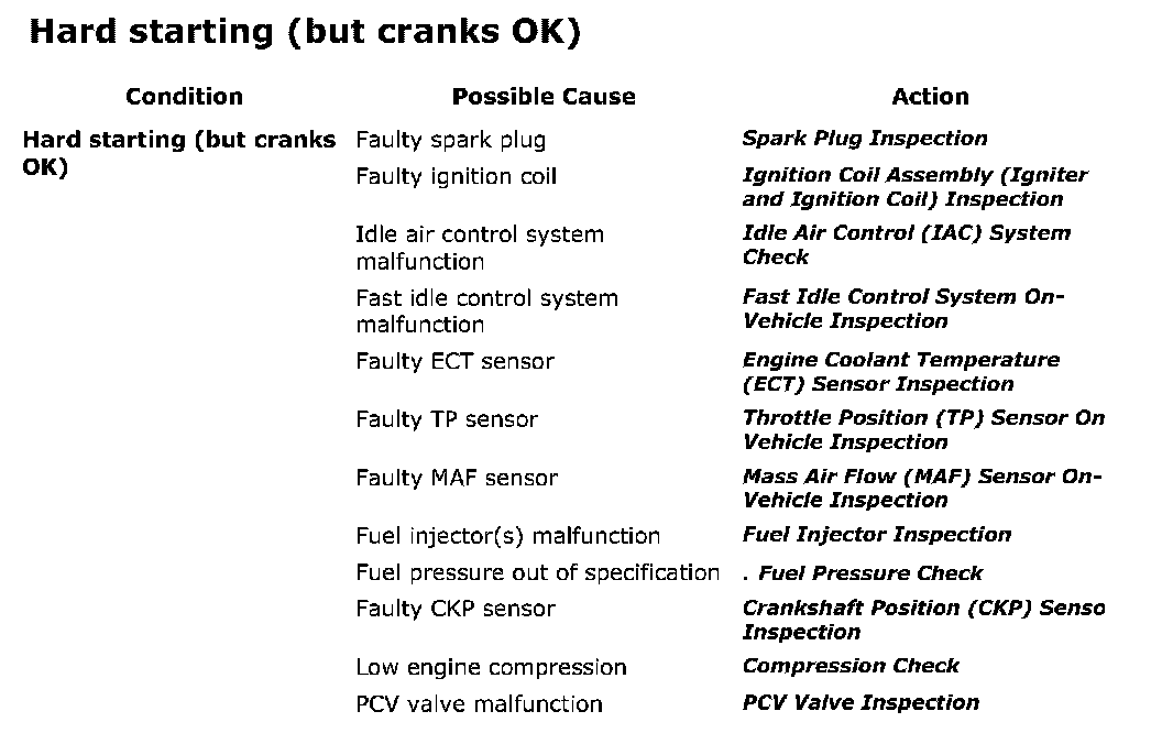 Hard Starting (Cranks OK):
