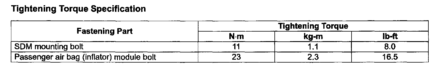 Tightening Torque Specification: