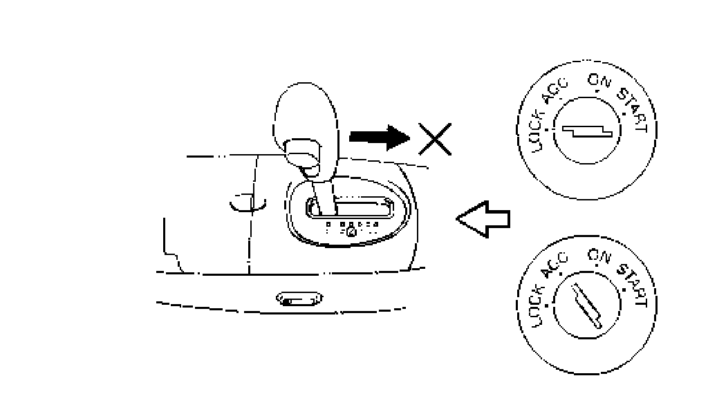 3. With ignition lever shifted to any position other than "P" range, check that ignition key cannot be turned LOCK position and it cannot be removed from ignition switch unless it is at LOCK position.