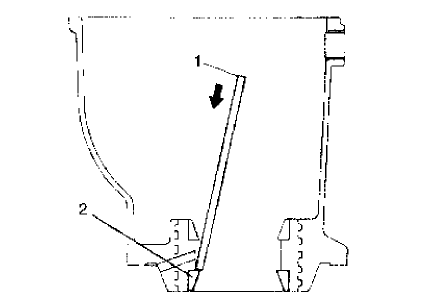 4. Using some appropriate rod (1), drive out differential side bearing outer races (2).