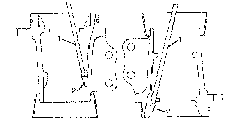 1. Clean mating surface of right and left cases, and apply sealant to right case (1) by using a nozzle (2) as shown in figure by such amount that its section is 1.2 mm (0.047 inch) in diameter.