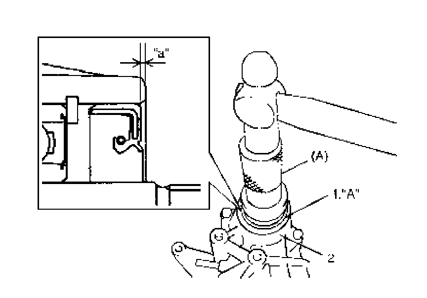 Intermediate output oil seal installing depth "a": 1.0 - 2.0 mm (0.04 - 0.08 inch)