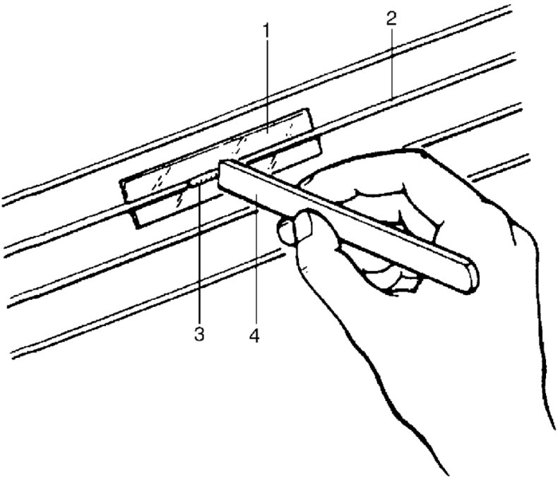 3. Apply commercially-available repair agent (3) with a fine-tip brush (4).