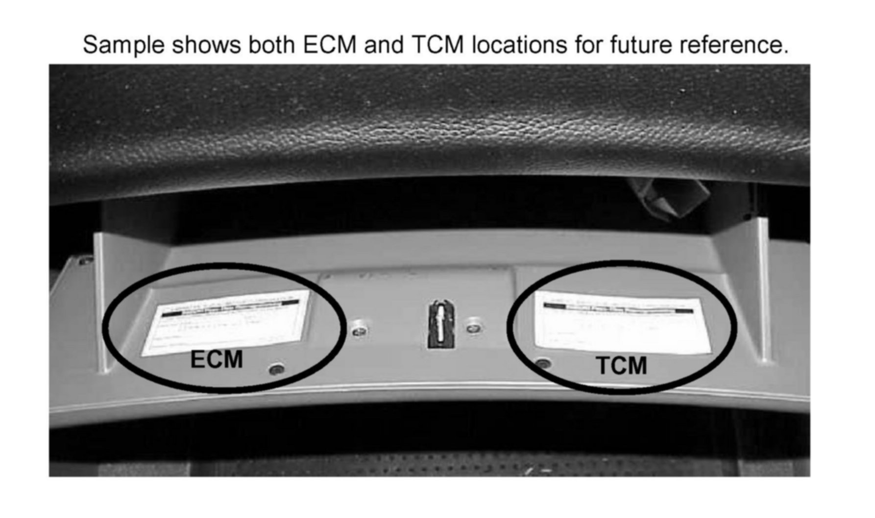5. When the ECM reprogramming is complete fill out the Reprogram Label P/N 99963-01501-224 and affix it to the inside left of the glove box door as pictured.
