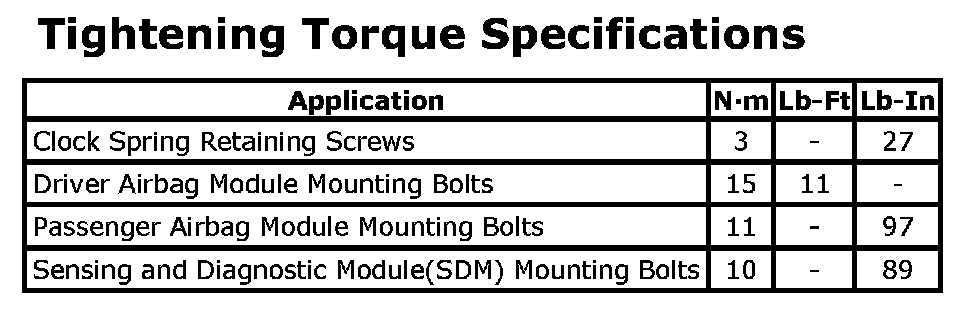 Tightening Torque Specifications: