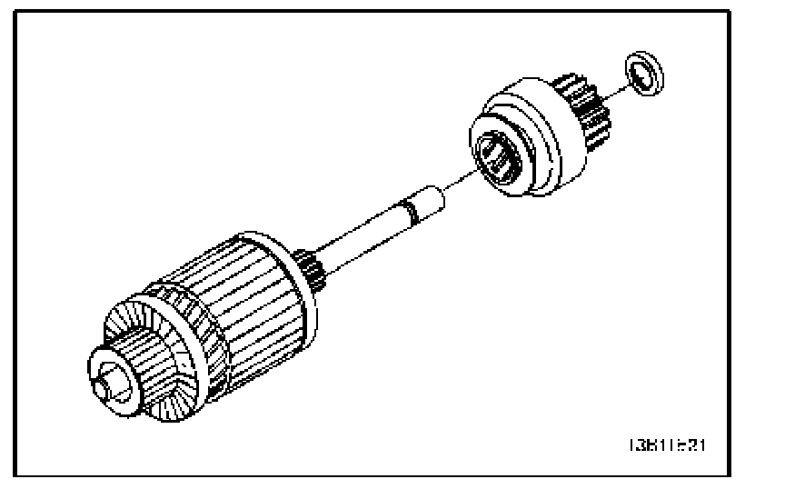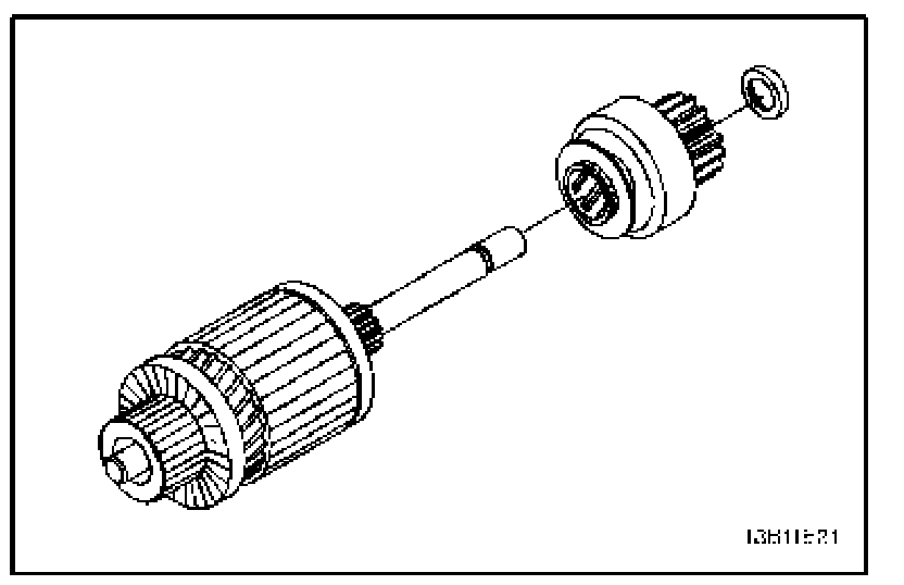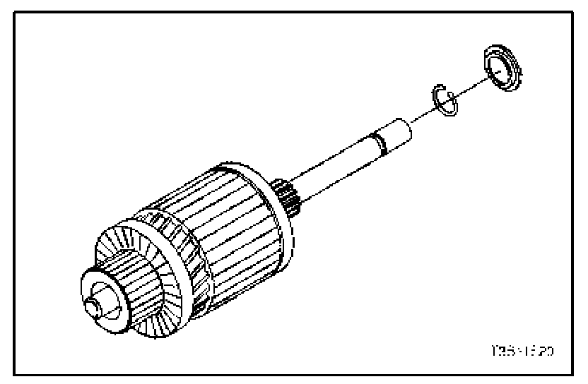 25. When the starter motor is disassembled and the solenoid is replaced, it is necessary to check the pinion clearance.