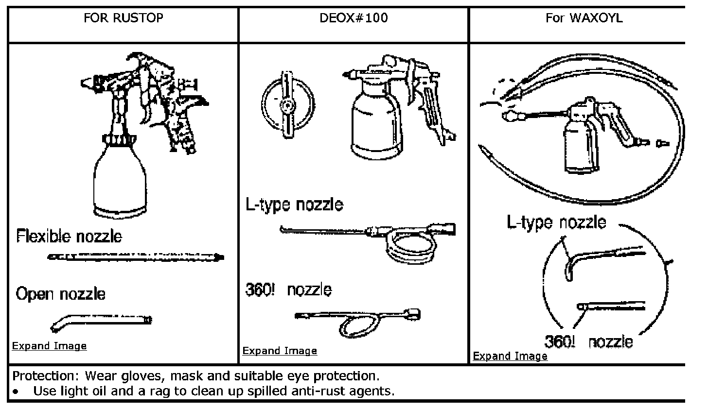 WARNING: ANTI-RUST agents contain substances that are harmful if you breathe or swallow them, or get them on your skin. Wear converalls, gloves, eye protection, and an approved respirator while using such agents.