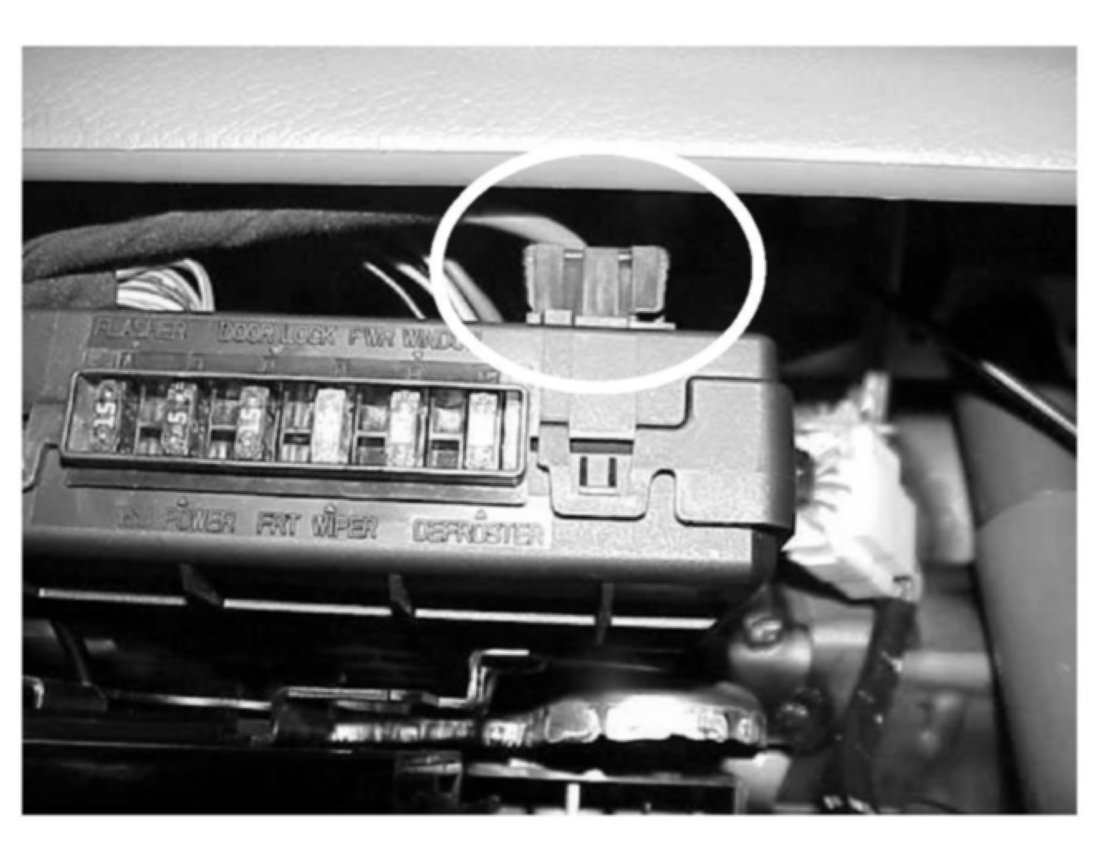 22.Turn off the ignition. Turn off the Tech II and disconnect it. Remove the indicated power wire from the ISU for ten seconds then reconnect. The ISU is located to the left of the steering column next to the knee bolster panel. Start the procedure again from step 9.